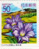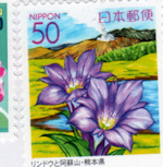 切手は阿蘇山とリンドウです。